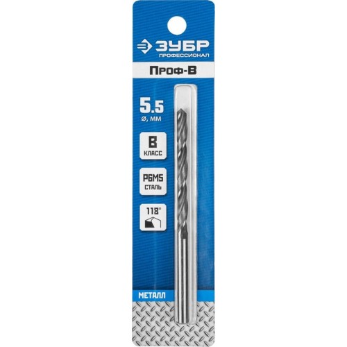 Сверло ЗУБР 29621-5.5, предназначено для обработки легированных и углеродистых сталей с пределом прочности до 900 Н/мм², цветных металлов, серого чугуна и пластмассы. Качественное сверло с высоким ресурсом. Изготовлено методом винтового проката по ГОСТ 10902-77 и соответствует классу точности "В". Угол заточки 118 градусов позволяет обрабатывать легированные и углеродистые стали.