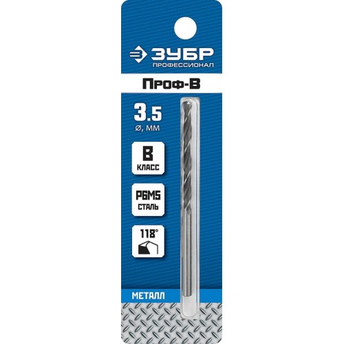 Сверло ЗУБР 29621-3.5, предназначено для обработки легированных и углеродистых сталей с пределом прочности до 900 Н/мм², цветных металлов, серого чугуна и пластмассы. Качественное сверло с высоким ресурсом. Изготовлено методом винтового проката по ГОСТ 10902-77 и соответствует классу точности "В". Угол заточки 118 градусов позволяет обрабатывать легированные и углеродистые стали.