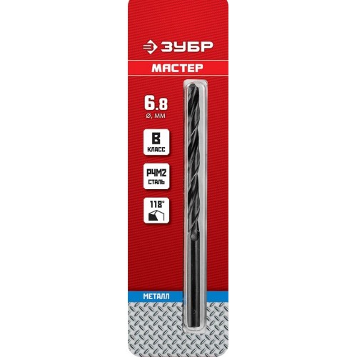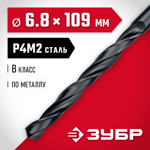 ЗУБР Ø 6.8 x 109 мм, сталь Р4М2, класс В, сверло по металлу 29605-6.8 Мастер