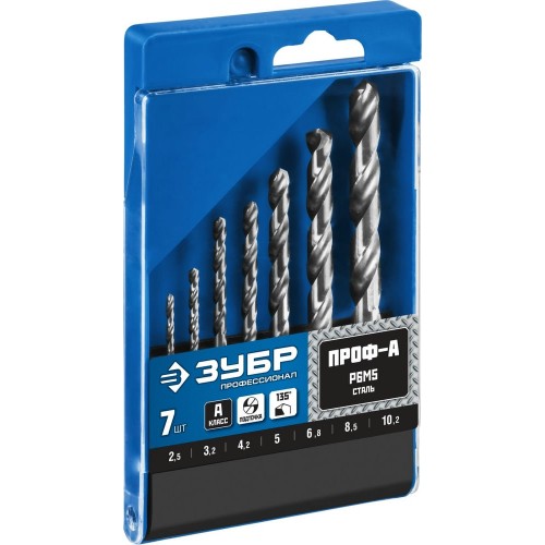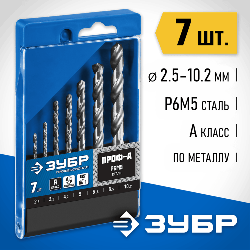 ЗУБР 7 шт. (Ø 2,5-10,2 мм), класс А, Р6М5, набор сверл по металлу 29625-H7R Профессионал