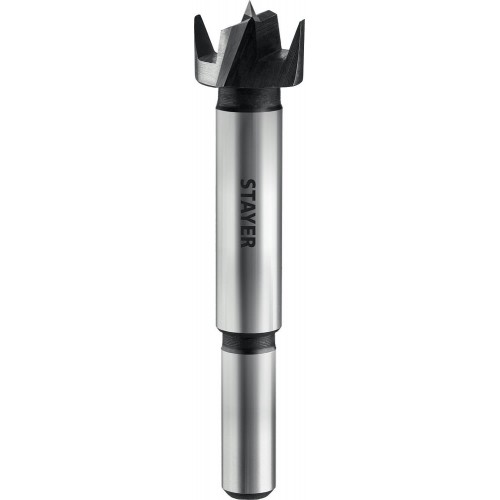 Сверло Форстнера по дереву STAYER 29985-22_z01, применяется при установке мебельной фурнитуры, а также при сверлении глухих отверстий с точной геометрией и плоским дном.