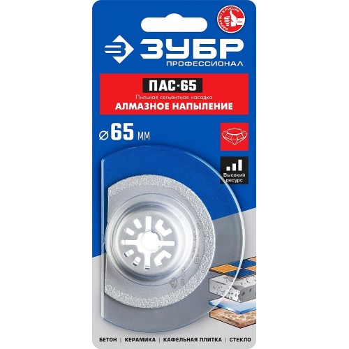 Насадка пильная с алмазным напылением ЗУБР 15564-65, предназначена для резки бетона, керамики, кафельной плитки, стекла. Насадка изготовлена из высококачественной инструментальной стали с покрытием из синтетических промышленных алмазов на автоматизированных производственных линиях с применением новейших методов нанесения рабочего слоя.