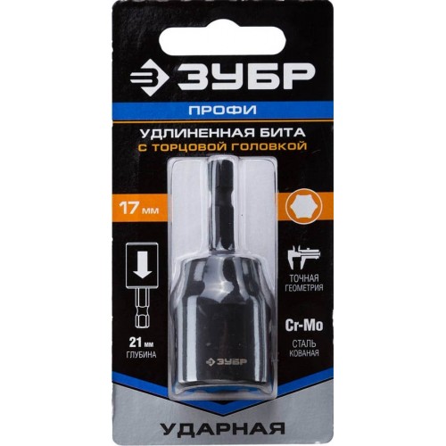 Профессиональные биты ЗУБР с торцовой головкой , для ударных шуруповертов. Экстратвердые рабочие грани обеспечивают высокую надежность, предохраняют от разрушения при пиковых нагрузках.