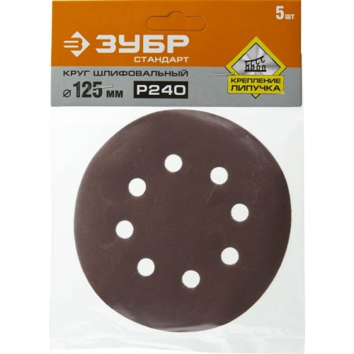Круги шлифовальные на липучке из абразивной бумаги 125 мм, Р240 ЗУБР 35350-125-240, применяются на орбитальных шлифовальных машинках и электрических дрелях с опорной тарелкой для обработки дерева, металла, пластика и других материалов. Круги шлифовальные изготовлены из абразивной бумаги на современном оборудовании по оригинальной технологии вырубки и соединения с Велкро основой. Обладают высоким рабочим ресурсом. Отвечают всем требованиям экологической безопасности и не содержат вредных веществ и примесей.