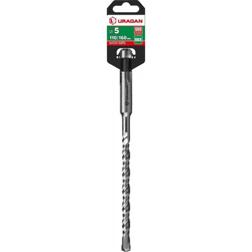 Бур по бетону URAGAN 29311-160-05, предназначен для перфоратора, применяется при сверлении отверстий в бетоне, граните, кирпичной кладке, камне и твердом известняке. Буры URAGAN обладают высокой производительность и большим рабочим ресурсом. Динамичный наконечник бура из твердого сплава ВК8 в форме зубила обеспечивает быстрое вхождение в материал и быстро отводит шлам в спираль. Спираль S4 с усиленным сердечником обеспечивает оптимальное соотношение между устойчивостью к излому бура и быстрым отводом шлама.