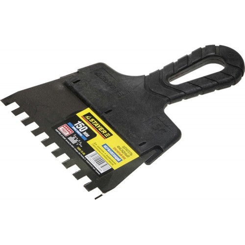 Благодаря зубчатой кромке шпатель идеально подходит для работы со строительными и клеевыми смесями, полотно из нержавеющей стали обеспечивает надежность и долгий срок службы, а удобная пластмассовая рукоятка создает условия для комфортной работы