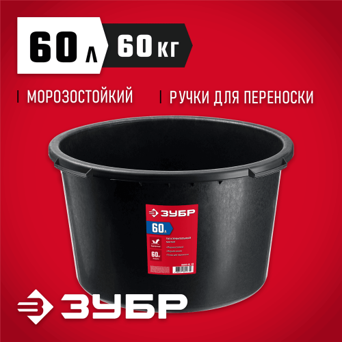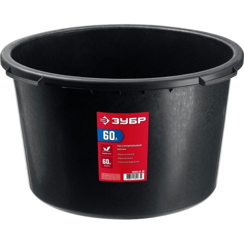 Таз строительный ЗУБР 06095-65_z03, предназначен для приготовления и переноски строительных смесей. Подходит для приготовления любых видов строительных растворов (клеевых, штукатурных, лакокрасочных). Ударопрочный пластик. Ручки для переноски.
