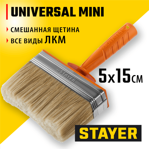 STAYER Universal MINI, 5 х 15 см, светлая натуральная щетина, пластмассовый корпус, все виды ЛКМ, макловица, Professional (0182-15)