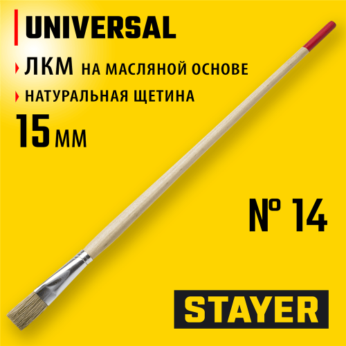 Кисть плоская тонкая STAYER 0124-14, предназначена для нанесения ЛКМ на масляной основе. Натуральная щетина обеспечит оптимальное нанесение различных видов ЛКМ, щетина кисти надежно закреплена бандажом из никелированной стали, а наличие удобной деревянной рукоятки обеспечит комфортную работу. Перед использованием и после окончания работ промойте кисть в растворителе. При работе используйте средства индивидуальной защиты.