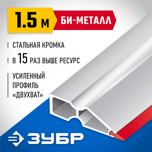 Правило ЗУБР 1072-1.5_z02, применяется для нанесения и выравнивания штукатурного слоя на горизонтальных и вертикальных поверхностях. Благодаря новейшей запатентованной конструкции со стальной закаленной рабочей кромкой, срок службы увеличен в 15 раз по сравнению с обычным алюминиевым правилом. Профиль ″Двухват″ - запатентованное преимущество дополнительного упора. Удлиненная область захвата - надежное удержание правила в руке при силовых работах. Оптимальный угол кромки повышает устойчивость правила к необратимой деформации.