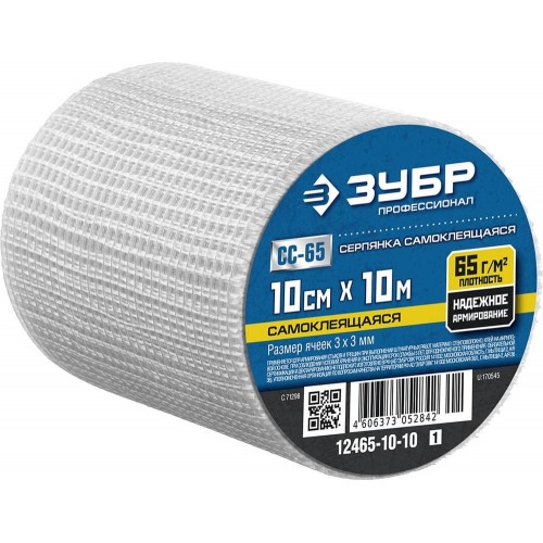 ЗУБР 10 см х 10 м, 3х3 мм, сетка самоклеящаяся стеклотканевая 12465-10-10_z01 Профессионал
