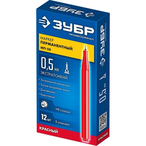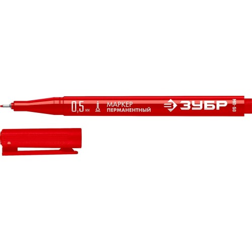 ЗУБР МП-50 0,5 мм, красный, экстратонкий перманентный маркер, Профессионал (06321-3)