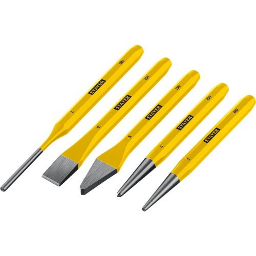 Набор зубил и кернеров STAYER HERCULES 21077-H5, предназначен для рубки или раскалывания различных материалов, накернивания насечек. Изготовлены из рельсовой стали. Высокое качество и продолжительный срок службы. Точное изготовление для ответственных работ. Закалка до 50 HRC.