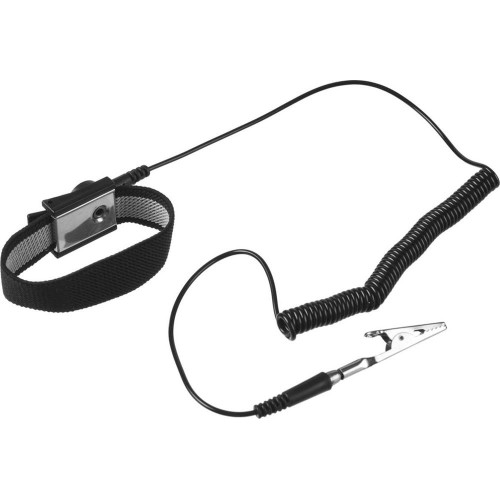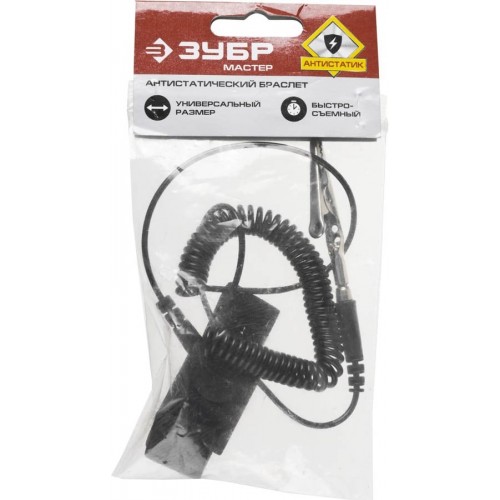 Антистатический браслет ЗУБР 55461. При использовании антистатического браслета электрический заряд не скапливается на теле и одежде человека, а притягивается токопроводящими волокнами и по шнуру отводится от рабочего места на резистор с шиной заземления. Это позволяет специалисту выполнять любые операции с электронной техникой без риска повредить полупроводниковые приборы и компоненты устройств электрическим разрядом.