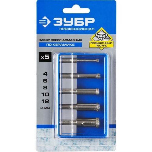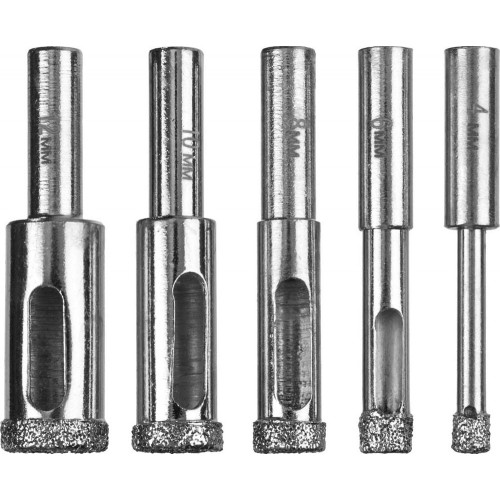 ЗУБР Ø4, 6, 8, 10, 12 мм, 5 предметов, набор сверл алмазных трубчатых по кафелю и стеклу 29850-H5