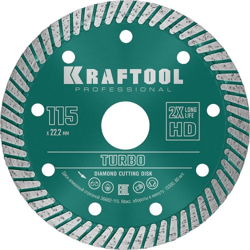KRAFTOOL Ø 115Х22.2 мм, алмазный, сегментный, по армированному бетону, кирпичу диск отрезной TURBO 36682-115