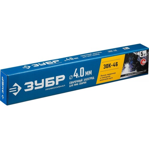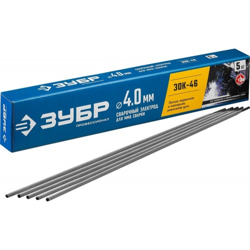 Электрод сварочный ЗУБР 40035-4.0, предназначен для сварки особо ответственных конструкций из углеродистых низколегированных сталей в сложных монтажных условиях и труднодоступных местах. Применяются на ММА сварочных инверторах. Сварочные работы переменным и постоянным током любой полярности. Качественный мелкочешуйчатый шов на малых токах. Быстрый первичный и последующие розжиги дуги на низком напряжении холостого хода. Повышенная прочность покрытия к стальному стержню электрода. Ограниченно допускается сварка влажного и плохо очищенного металла без подготовки.