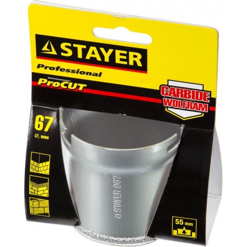 Кольцевая коронка с нанесением карбида вольфрама STAYER серии PROFESSIONAL - надежный и проверенный инструмент высокого качества. Применяется для получения ровных отверстий в облицовочных материалах, а также в ячеистом бетоне, кирпиче и гипсокартоне.