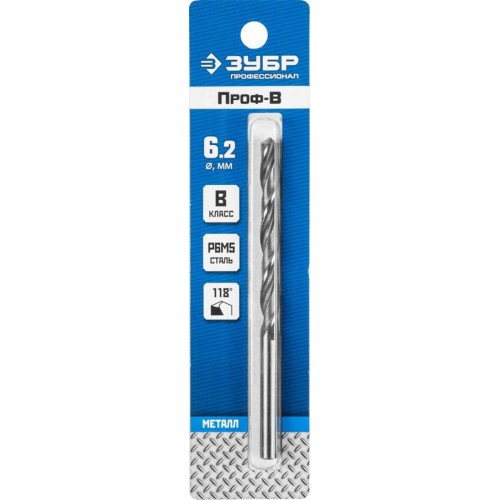 ЗУБР Ø 6.2 x 101 мм, сталь Р6М5, класс В, сверло по металлу 29621-6.2 Профессионал