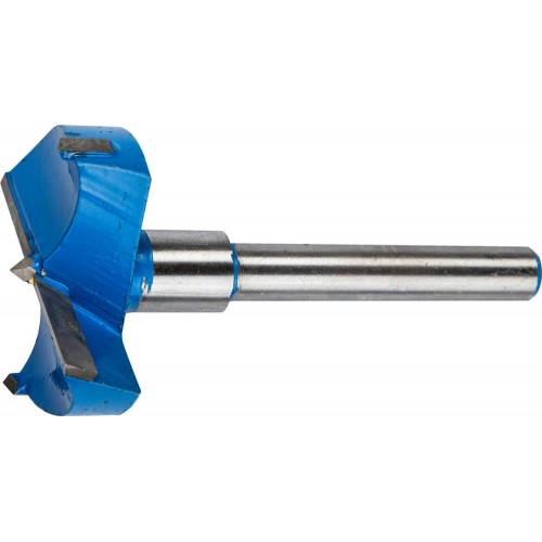 Сверло по дереву Форстнера ЗУБР 29945-45, применяется при установке мебельной фурнитуры, а также при сверлении глухих отверстий с точной геометрией и плоским дном. Благодаря боковым режущим кромкам и диаметральному подрезателю сверла обеспечивают высокую чистоту и качество реза. Наличие центрующего острия полностью исключает радиальное биение при работе. Из-за конструкции сверла в процессе работы не происходит автоматического выброса стружки. Необходимо извлекать древесную стружку из отверстия принудительно, останавливая процесс сверления.