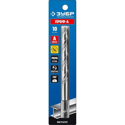 Сверло ЗУБР 29623-10, предназначено для обработки легированных и углеродистых сталей с пределом прочности до 900Н/мм², цветных металлов, серого чугуна и пластмассы. Качественное и точное сверло с большим ресурсом. Изготовлено из стали Р6М5 и имеет высокою теплостойкость и продолжительный срок службы. Сверло изготовлено методом шлифования профиля и соответствует классу точности "А1". Шестигранный хвостовик с проточкой исключает возможность проворачивание сверла в патроне и облегчает замену инструмента. Крестообразная подточка позволяет начать сверлить без предварительного кернения. Угол заточки при вершине равный 135° повышает производительность работ.