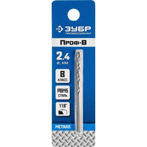 ЗУБР Ø 2.4 x 57 мм, сталь Р6М5, класс В, сверло по металлу 29621-2.4 Профессионал