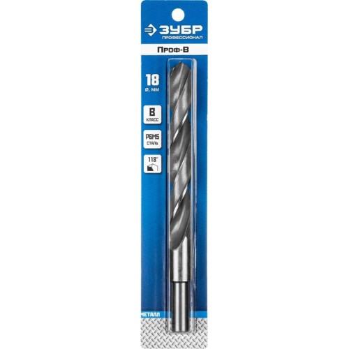 Сверло ЗУБР 29621-18, предназначено для обработки легированных и углеродистых сталей с пределом прочности до 900 Н/мм², цветных металлов, серого чугуна и пластмассы. Качественное сверло с высоким ресурсом. Изготовлено методом винтового проката по ГОСТ 10902-77 и соответствует классу точности "В". Угол заточки 118 градусов позволяет обрабатывать легированные и углеродистые стали.