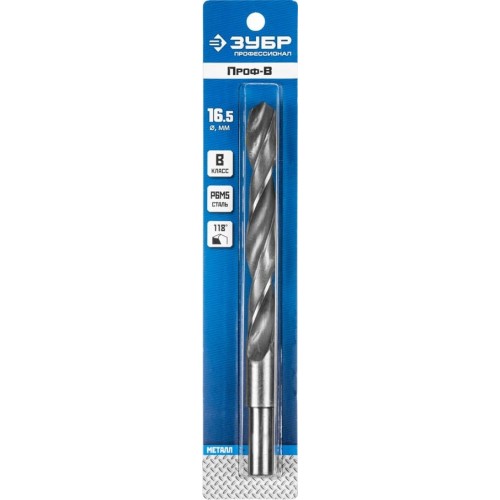 Сверло ЗУБР 29621-16.5, предназначено для обработки легированных и углеродистых сталей с пределом прочности до 900 Н/мм², цветных металлов, серого чугуна и пластмассы. Качественное сверло с высоким ресурсом. Изготовлено методом винтового проката по ГОСТ 10902-77 и соответствует классу точности "В". Угол заточки 118 градусов позволяет обрабатывать легированные и углеродистые стали.