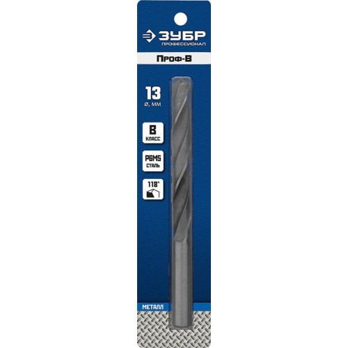 Сверло ЗУБР 29621-13, предназначено для обработки легированных и углеродистых сталей с пределом прочности до 900 Н/мм², цветных металлов, серого чугуна и пластмассы. Качественное сверло с высоким ресурсом. Изготовлено методом винтового проката по ГОСТ 10902-77 и соответствует классу точности "В". Угол заточки 118 градусов позволяет обрабатывать легированные и углеродистые стали.