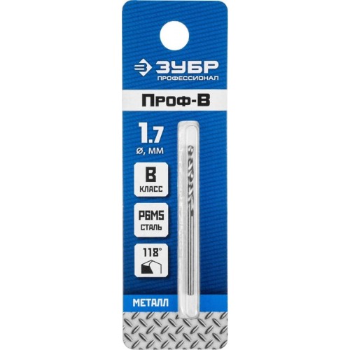 Сверло ЗУБР 29621-1.7, предназначено для обработки легированных и углеродистых сталей с пределом прочности до 900 Н/мм², цветных металлов, серого чугуна и пластмассы. Качественное сверло с высоким ресурсом. Изготовлено методом винтового проката по ГОСТ 10902-77 и соответствует классу точности "В". Угол заточки 118 градусов позволяет обрабатывать легированные и углеродистые стали.