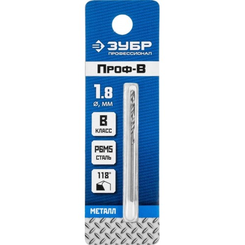 Сверло ЗУБР 29621-1.8, предназначено для обработки легированных и углеродистых сталей с пределом прочности до 900 Н/мм², цветных металлов, серого чугуна и пластмассы. Качественное сверло с высоким ресурсом. Изготовлено методом винтового проката по ГОСТ 10902-77 и соответствует классу точности "В". Угол заточки 118 градусов позволяет обрабатывать легированные и углеродистые стали.