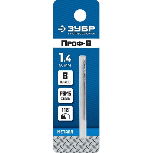 ЗУБР Ø 1.4 x 40 мм, сталь Р6М5, класс В, сверло по металлу 29621-1.4 Профессионал