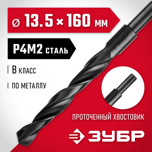 ЗУБР Ø 13.5 x 160 мм, сталь Р4М2, класс В, сверло по металлу 29605-13.5 Мастер