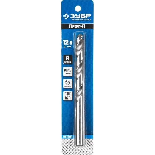ЗУБР Ø 12.5 x 151 мм, сталь Р6М5, класс А1, сверло по металлу 29625-12.5 Профессионал