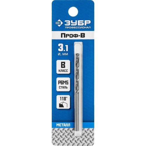 ЗУБР Ø 3.1 x 65 мм, сталь Р6М5, класс В, сверло по металлу 29621-3.1 Профессионал