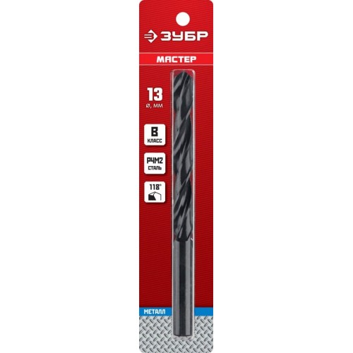 Сверло ЗУБР 29605-13, предназначено для обработки легированных и углеродистых сталей, цветных металлов, серого чугуна и пластмассы. Универсальное сверло для большинства задач. Изготовлено методом винтового проката по ГОСТ 10902-77 и соответствует классу точности "В". Угол заточки 118 градусов позволяет обрабатывать легированные и углеродистые стали.