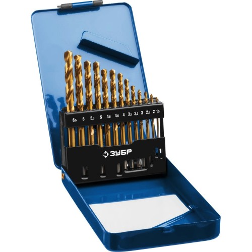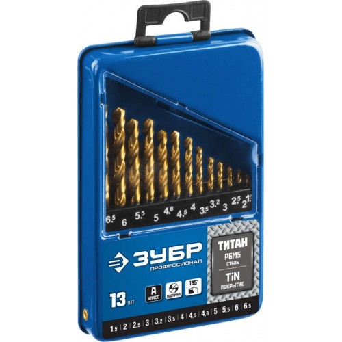 ЗУБР 13 шт. (Ø 1,5-6,5 мм), ТИТАН, Р6М5, класс А, набор сверл по металлу 29615-H13_z01 Профессионал