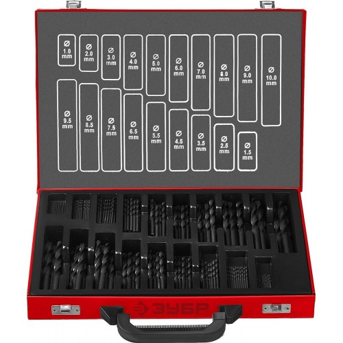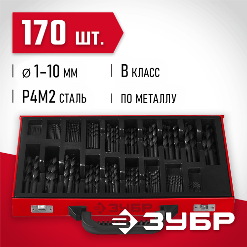 ЗУБР 170 шт. (Ø 1-10 мм), набор сверл по металлу 29605-H170