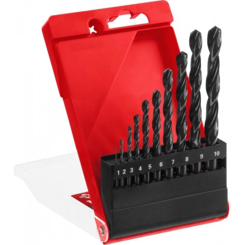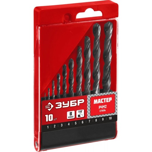 Набор сверел Зубр 29605-H10, предназначен для обработки легированных и углеродистых сталей с пределом прочности до 800Н/мм2, цветных металлов, серого чугуна и пластмассы. Универсальное сверло для большинства задач. Изготовлено методом винтового проката по ГОСТ 10902-77 и соответствует классу точности "В". Угол заточки 118 градусов позволяет обрабатывать легированные и углеродистые стали.