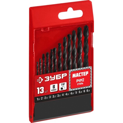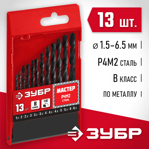 ЗУБР 13 шт. (Ø 1,5-6,5 мм), набор сверл по металлу 29605-H13 Мастер