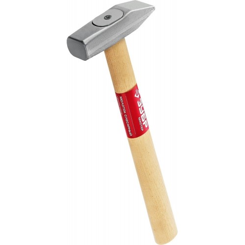 Молоток слесарный с деревянной рукояткой ЗУБР 20015-04_z02, предназначен для слесарно-монтажных работ. Инновационная фиксация головы при помощи клина, металлической пластины и шурупа. Кованая голова с долговечным цинковым покрытием. Изготовлен из стали 45 по ГОСТ 1050-88. Рукоятка из древесины высшего сорта. Рабочие поверхности закалены до 50,5-57 HRC. Надежность соединения головы с рукояткой многократно превышает ГОСТ 2310-77.