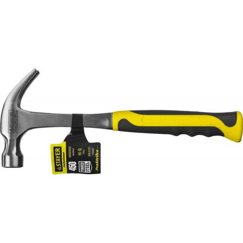 Молоток-гвоздодер STAYER 2025-450, предназначен для слесарно-монтажных работ. Технология AVT дает возможность гасить вибрации при ударе. Цельнометаллическая конструкция обеспечивает высокую надежность. Материал головы - кованая высококачественная сталь.