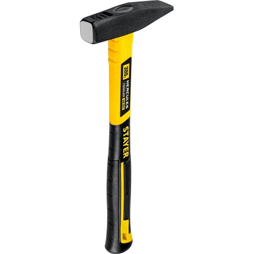Молоток слесарный с фиберглассовой двухкомпонентной рукояткой STAYER 20050-03_z02 предназначен для слесарно-монтажных работ. Рельефное противоскользящее покрытие рукоятки. Масса головы - 300 г.