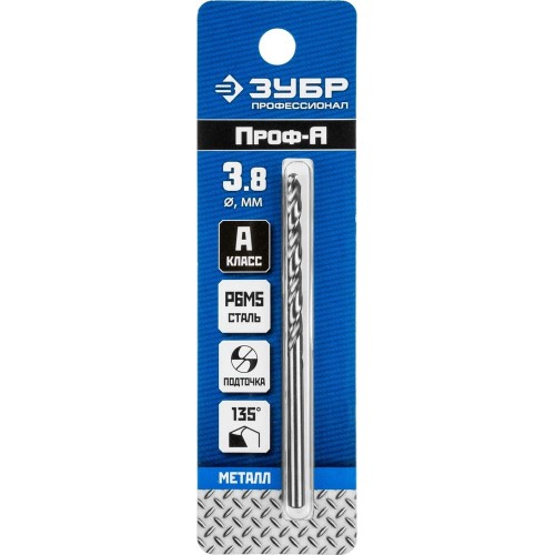 Сверло ЗУБР 29625-3.8, предназначено для обработки легированных и углеродистых сталей с пределом прочности до 900 Н/мм², цветных металлов, серого чугуна и пластмассы. Качественное и точное сверло с большим ресурсом. Сверло изготовлено методом шлифования профиля по ГОСТ 10902-77 и соответствует классу точности сверления "А1". Крестообразная подточка позволяет начать сверлить без предварительного кернения. Угол заточки при вершине равный 135° повышает производительность работ.