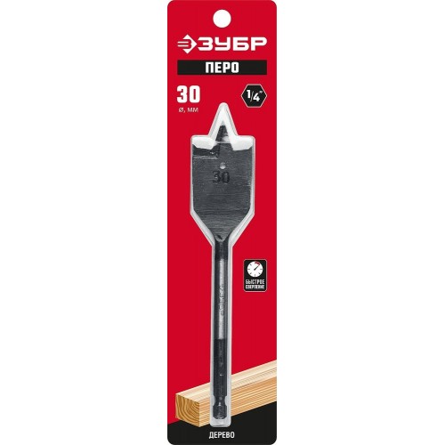Сверло по дереву перовое ЗУБР 29505-30_z01, предназначено для работы с древесиной, а также легкими строительными материалами, такими как гипсокартон.