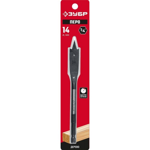Сверло по дереву перовое ЗУБР 29505-14_z01, предназначено для работы с древесиной, а также легкими строительными материалами, такими как гипсокартон.