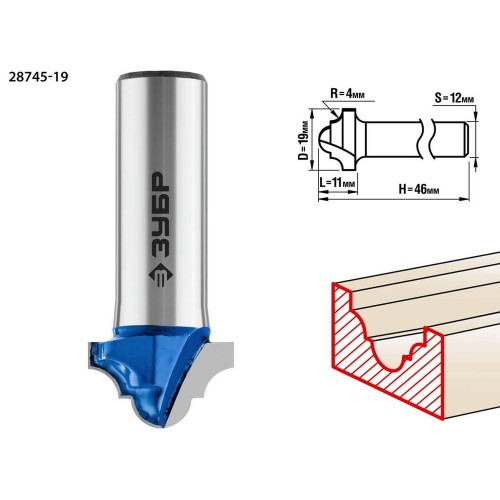 Фреза пазовая фасонная №6 ЗУБР 28745-19, предназначена для профилирования кромок, изготовления декоративных пазов и рисунков, фрезерования канавок при работе с различными видами древесины. Высококачественный твердый сплав для повышенного ресурса и чистоты обработки. Заточка производится только на самых современных станках с ЧПУ.