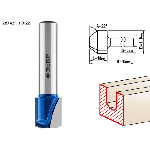 Фреза пазовая фасонная №3 ЗУБР 28742-11.9-22, предназначена для обработки торцев и кромок и сращивания деталей по торцу при работе с различными видами древесины. Высококачественный твердый сплав для повышенного ресурса и чистоты обработки. Заточка производится только на самых современных станках с ЧПУ.