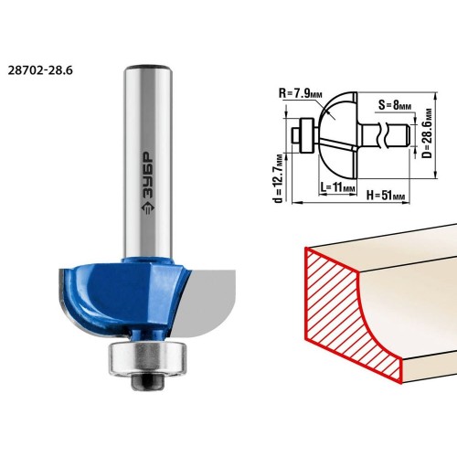 Фреза кромочная калевочная ЗУБР 28702-28.6, предназначена для скругления кромок при обработке столешниц, полок, шкафов и прочих работ с разнообразными видами древесины. Высококачественный твердый сплав для повышенного ресурса и чистоты обработки. Заточка производится только на самых современных станках с ЧПУ. Упорный подшипник позволяет обрабатывать криволинейные кромки без дополнительных приспособлений.