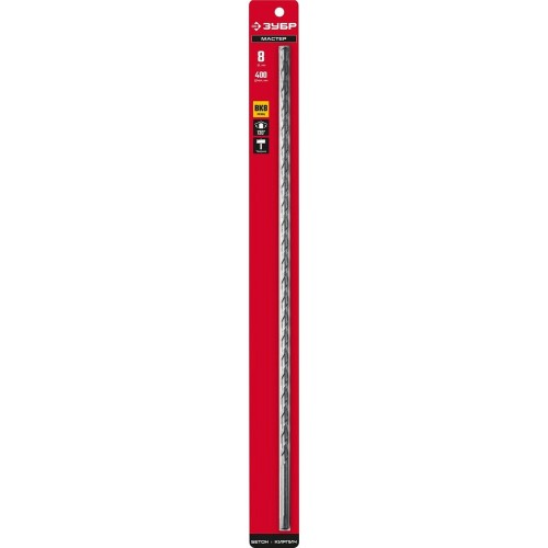 Сверло по бетону Зубр 2922-400-08, предназначено для работ по бетону, граниту, природному и искусственному камню, кирпичной кладке. Тип спирали: П-образная фрезерованная.